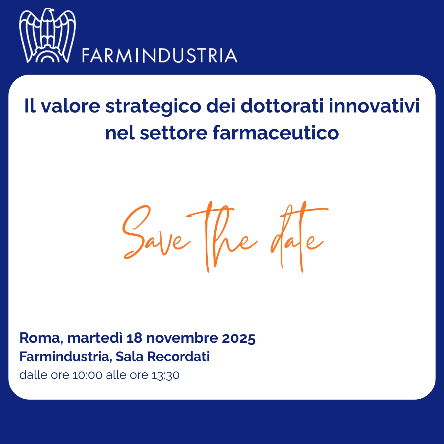 Focus dell’incontro sarà il Dottorato di Ricerca a caratterizzazione industriale, con il racconto diretto di esperienze e best practices da parte di Università e Imprese farmaceutiche e un approfondimento sulle prospettive future di collaborazione tra Accademia e Industria.